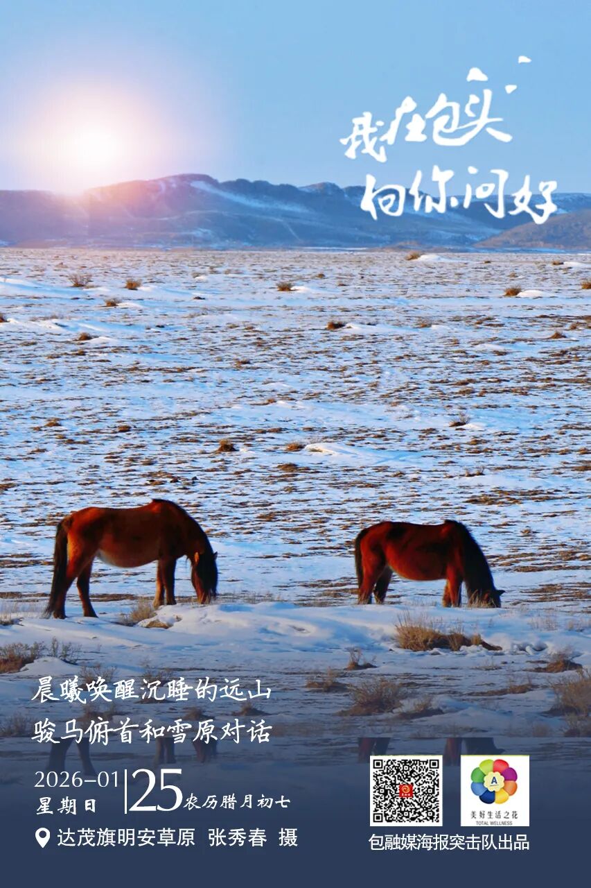 1月25日白天全市多云,市区东部、土右旗和达茂旗东南部有小雪,其余地区飘雪,空气质量良至轻度污染。西风3~4级,山南气温-11℃~1℃,山北气温-18℃~-3℃。25日夜间至26日白天全市多云转晴,空气质量优良。